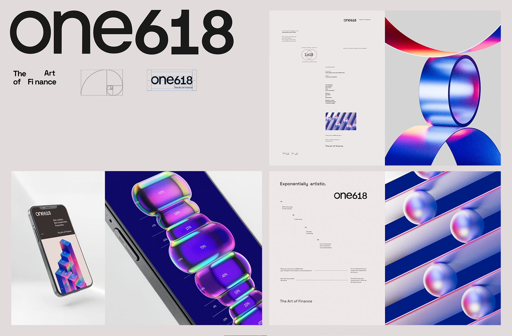 O desafio era construir uma marca que una duas perspectivas — financeira e cultural — em um projeto único e inovador. O nome One618 é inspirado na proporção áurea (1,618), um conceito enraizado tanto na arte quanto na arquitetura, escolhido para simbolizar equilíbrio, precisão e visão de longo prazo.