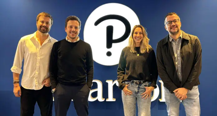 Legenda: da esquerda para a direita: Marcelo Bocchini (Business Director – Purpple), Marcelo Bernardes (CEO – Purpple), Livia Blanco (Marketing Manager Latam – Pearson) e Fernando Lugó (diretor de Marketing para América Latina – Pearson).