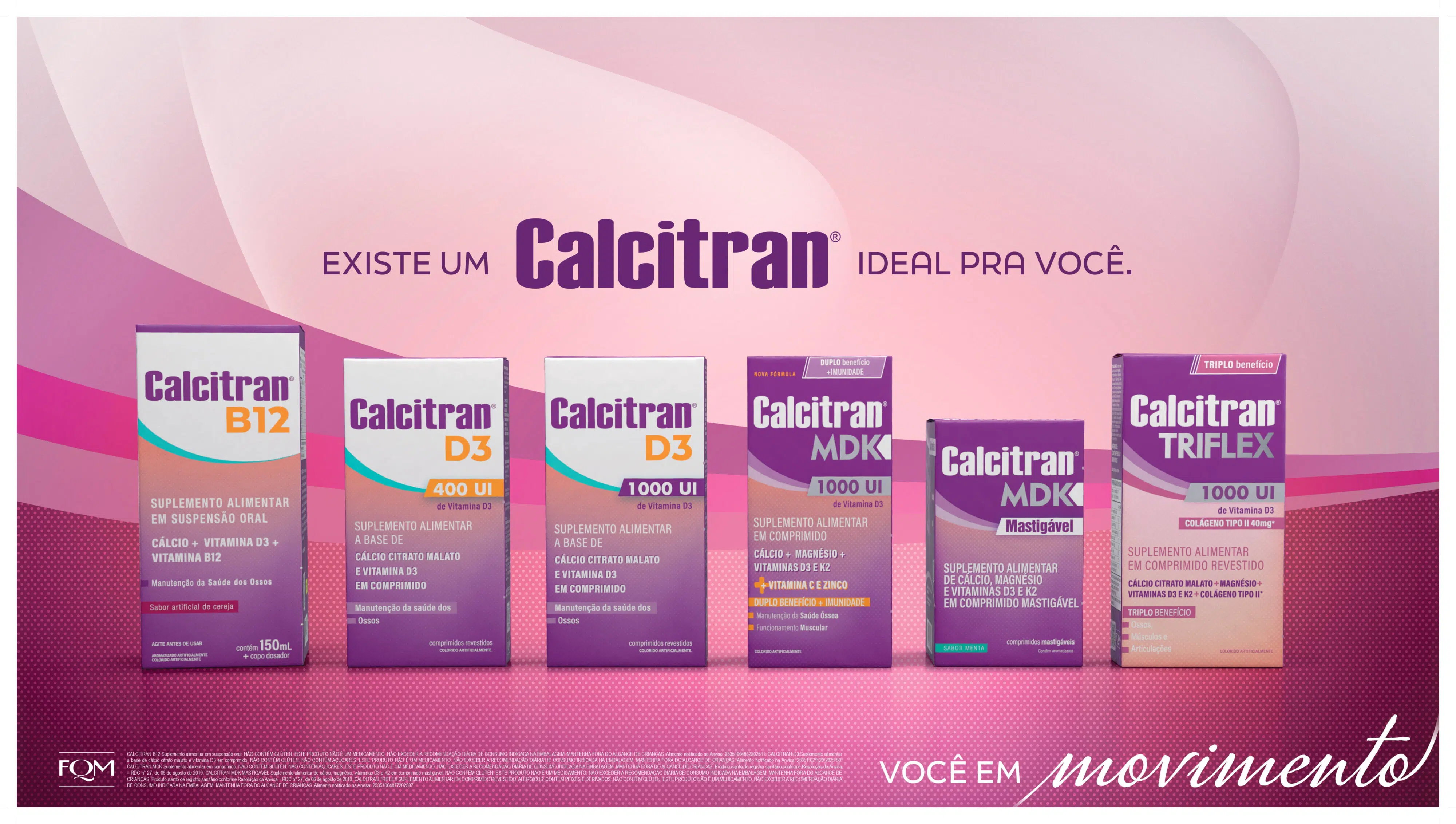 A linha conta com Calcitran B12, D3, MDK e Triflex, desenvolvidas para atender às necessidades específicas de diferentes perfis, combinando nutrientes fundamentais para a qualidade de vida e o bem-estar.