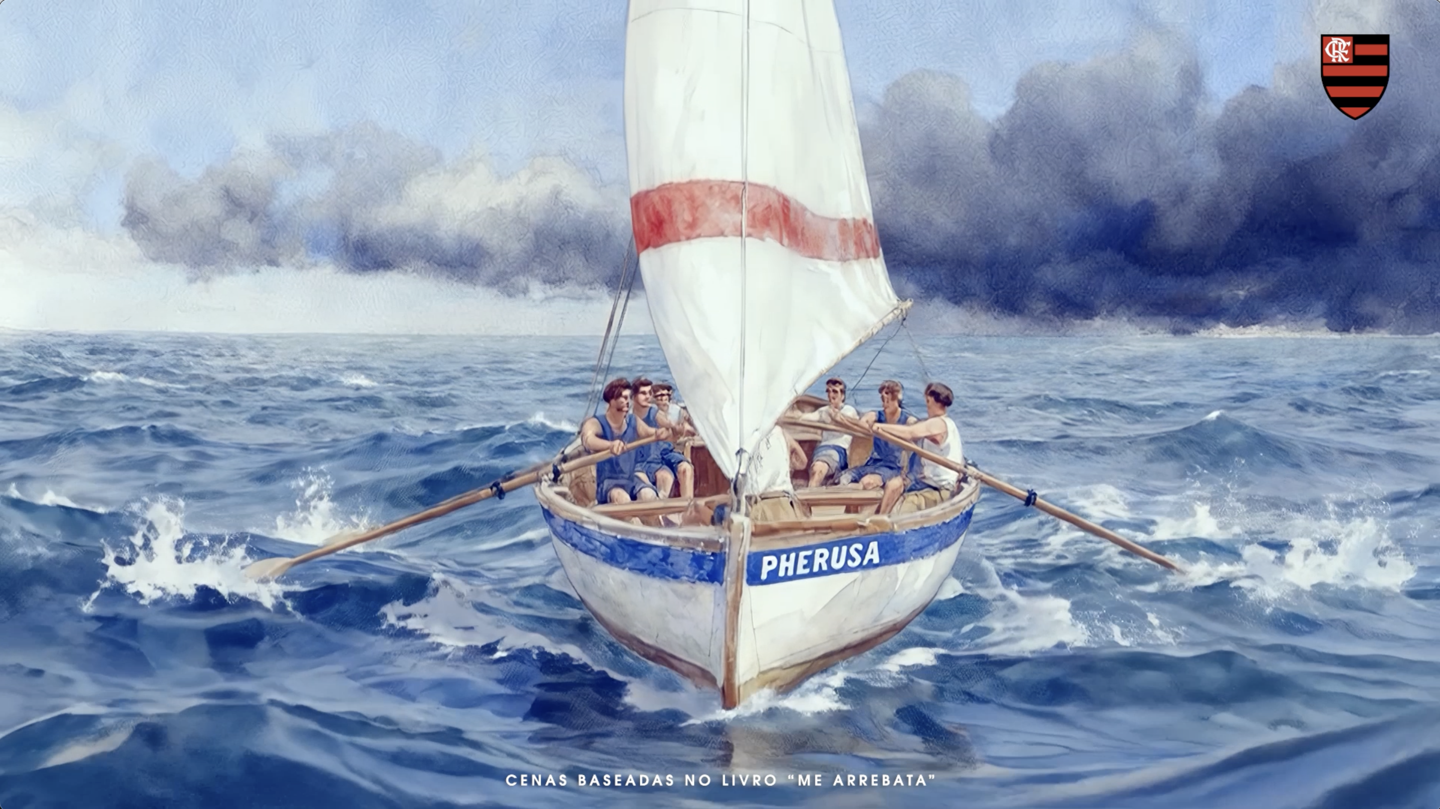 Baseada no livro “Me Arrebata”, de Maurício Neves de Jesus e Renato Dalmasso, a campanha conta a história do barco Pherusa – primeira embarcação do Clube, que chegou a naufragar, mas foi recuperada na raça pelos remadores que fundaram o Flamengo.