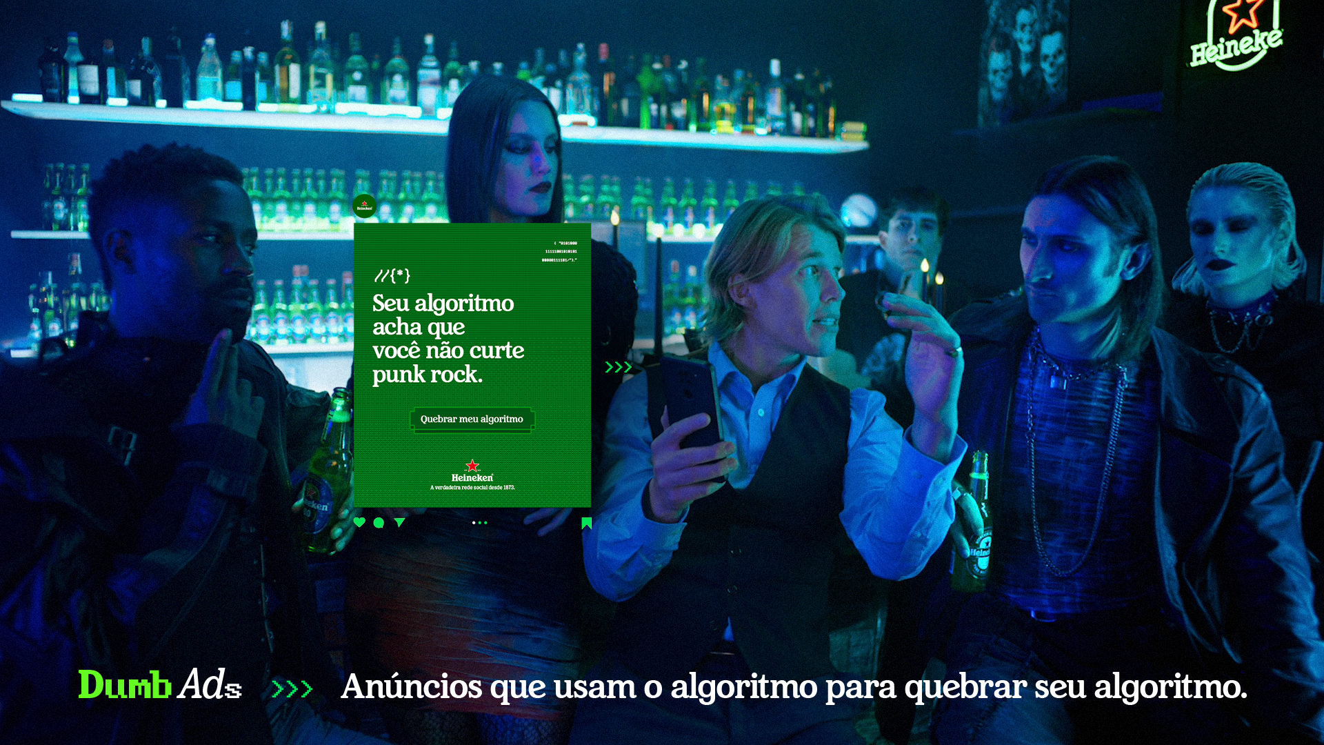 E se, em vez de reforçar os mesmos hábitos, o algoritmo fosse usado para surpreender? Partindo dessa provocação, a Heineken lançou “Dumb Ads” que subverte a lógica tradicional da mídia digital ao usar dados e tecnologia não para entregar mais do mesmo, mas para levar as pessoas a experiências completamente inesperadas.