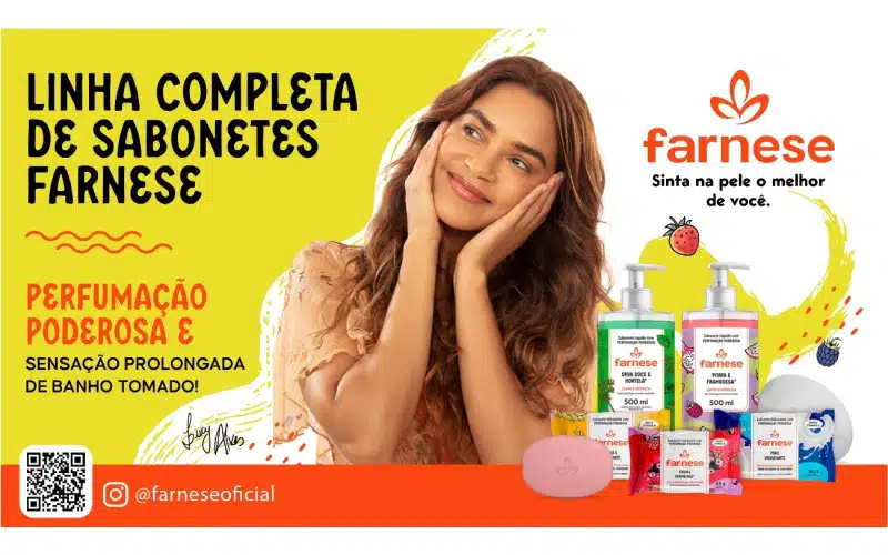 A Farnese, marca de sabonetes referência em perfumação, anuncia a atriz e cantora Lucy Alves como a primeira embaixadora da marca. A artista, que tem mais de um milhão de seguidores em suas redes sociais e foi protagonista da última novela das nove da Rede Globo, será o rosto da marca em campanha, que começa a ser divulgada em agosto. O propósito da marca é resgatar no momento do banho a leveza que existe em cada mulher, com um portfólio de sabonetes que traz uma perfumação poderosa, proporcionando aquela deliciosa sensação de banho tomado, através do slogan “Sinta na pele o melhor de você”.