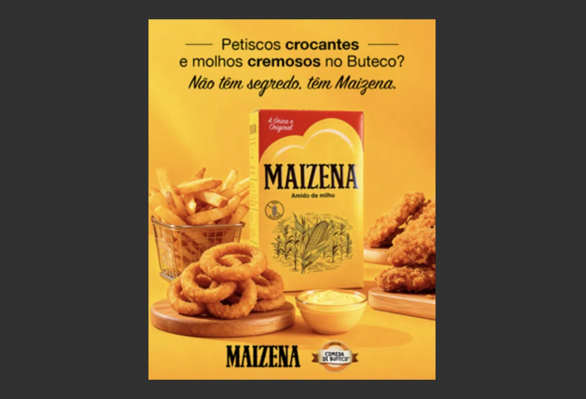 A iniciativa busca ampliar a visibilidade de Maizena, para além de seus usos tradicionais, conectando a marca ao preparo dos petiscos que fazem parte da experiência nos botecos. Como parte da estratégia, a marca estará presente nos estabelecimentos participantes do concurso nas regiões da capital e interior de São Paulo, com materiais personalizados que trazem a identidade visual da icônica caixinha amarela, do porta-guardanapo ao papel manteiga presente nas tábuas de petisco – reforçando sua conexão com a experiência do público ao longo do circuito.
