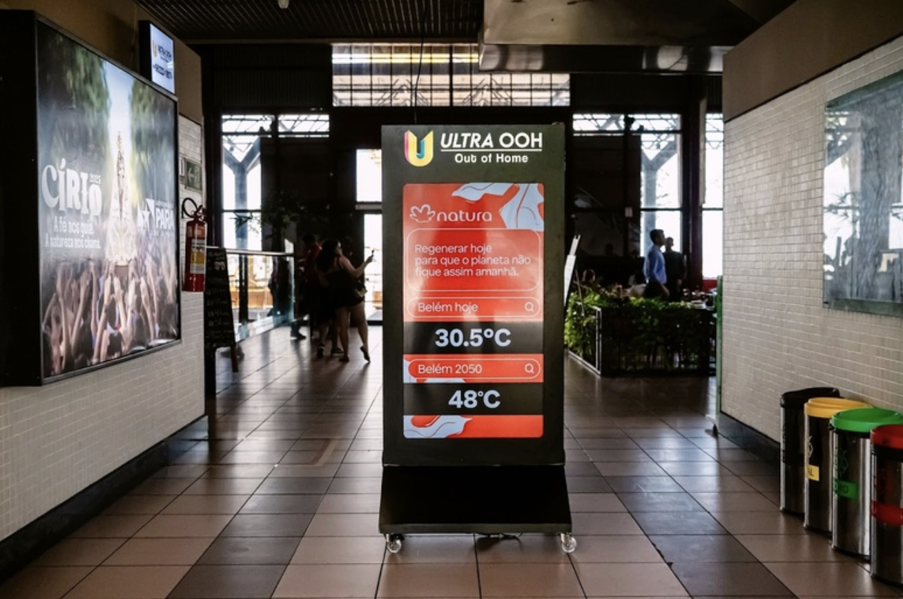 Em uma iniciativa de alto impacto visual, a Natura, reconhecida como a marca mais sustentável do mundo pela Kantar*, lança um Outdoor especial em Belém que transforma um termômetro de rua em um poderoso alerta sobre o futuro da crise climática. A ação que ficará ativa durante a Cop 30 foi criada pela Africa Creative.