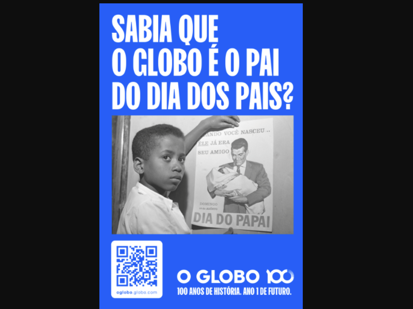 Fundado em 29 de julho de 1925, O GLOBO se consolida como um veículo jornalístico visionário, que usou, desde o início, a sua inovação como força motriz para se tornar relevante na vida do seu público leitor. Comprometido com o jornalismo isento, independente e comprometido com os fatos e a verdade, o jornal construiu um legado de credibilidade e relevância, que ultrapassa os limites do tempo, em evolução constante para o seu propósito de informar. Agora, 100 anos desde a sua fundação, O GLOBO se encontra preparado para enfrentar as expectativas e os desafios dos novos tempos, com o DNA de inovação que transparece em cada um dos anúncios publicitários.