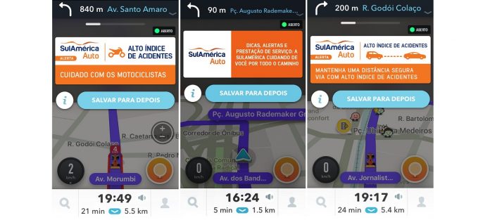 Outro alerta disponibilizado pela seguradora no Waze é a identificação do “Motorista Amigo” em bairros boêmios, serviço de leva e traz da companhia, acionado quando o condutor não está em condições de dirigir. As informações aparecem em forma de banner para alguns usuários, conforme o local e as condições do trânsito.