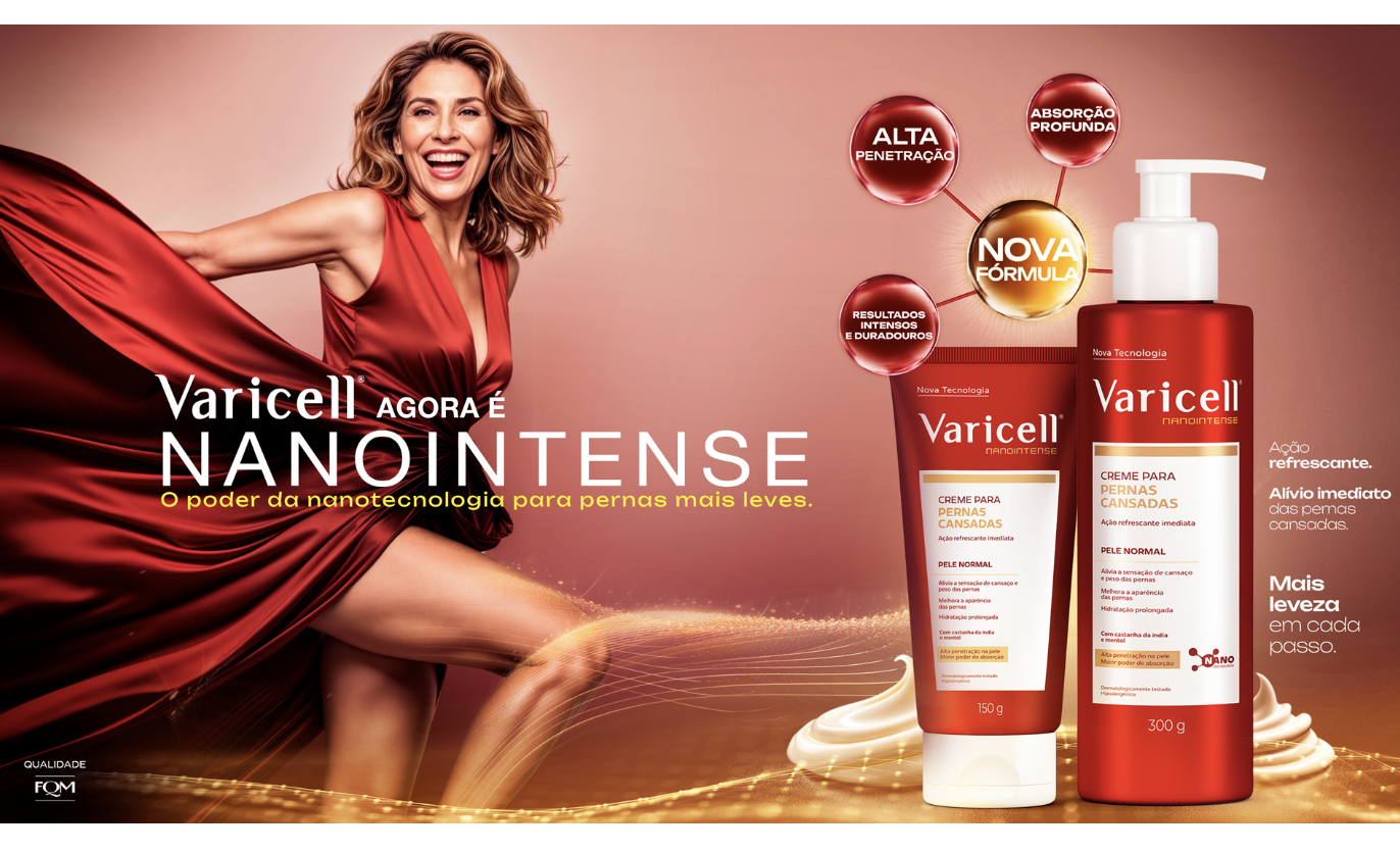 Criada pela Next, agência de metodologia ágil do Grupo Dreamers, a campanha apresenta o conceito “Varicell agora é Nanointense”, destacando os benefícios da nova fórmula. A tecnologia empregada permite que os ativos penetrem nas camadas mais profundas da pele, aumentando a absorção e potencializando o efeito de alívio da sensação de peso e cansaço nas pernas.