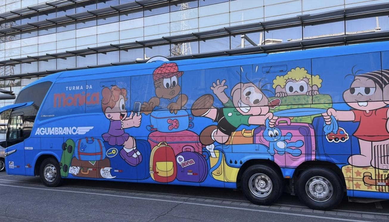 A companhia já conta com o primeiro veículo temático do Chico Bento, lançado em janeiro como parte de um projeto cultural que passou a circular nas linhas operadas pela Águia Branca. Agora, o novo ônibus da Turma da Mônica, um modelo semileito com chassi RSD de 42 lugares, traz estampas icônicas dos personagens infantis da MSP Estúdios. O lançamento aconteceu no último sábado (19) no Parque Villa-Lobos, Zona Oeste de São Paulo.