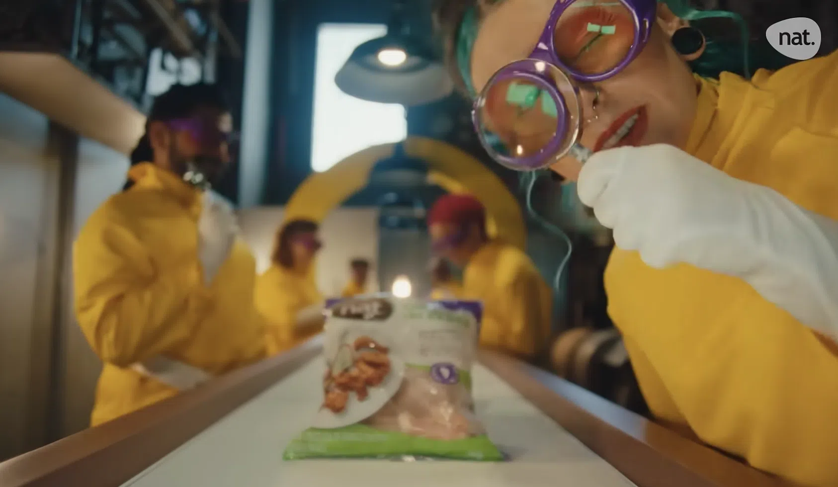 Todo o trabalho, das granjas parceiras até a chegada do produto à mesa do consumidor, é ilustrado em peças de TV, que trazem uma mulher em casa, pronta para almoçar um saudável prato de frango e salada. Com a primeira prova, a personagem é transportada para um universo fantástico – o maravilhoso mundo Nat. Lá, ela conhece um pouco mais sobre a forma inovadora e responsável que a marca atua nas diferentes etapas do processo produtivo, com aves criadas em granjas familiares, recebendo uma alimentação especialmente selecionada, tudo dentro de um sistema rastreado, com garantia de origem e segurança.