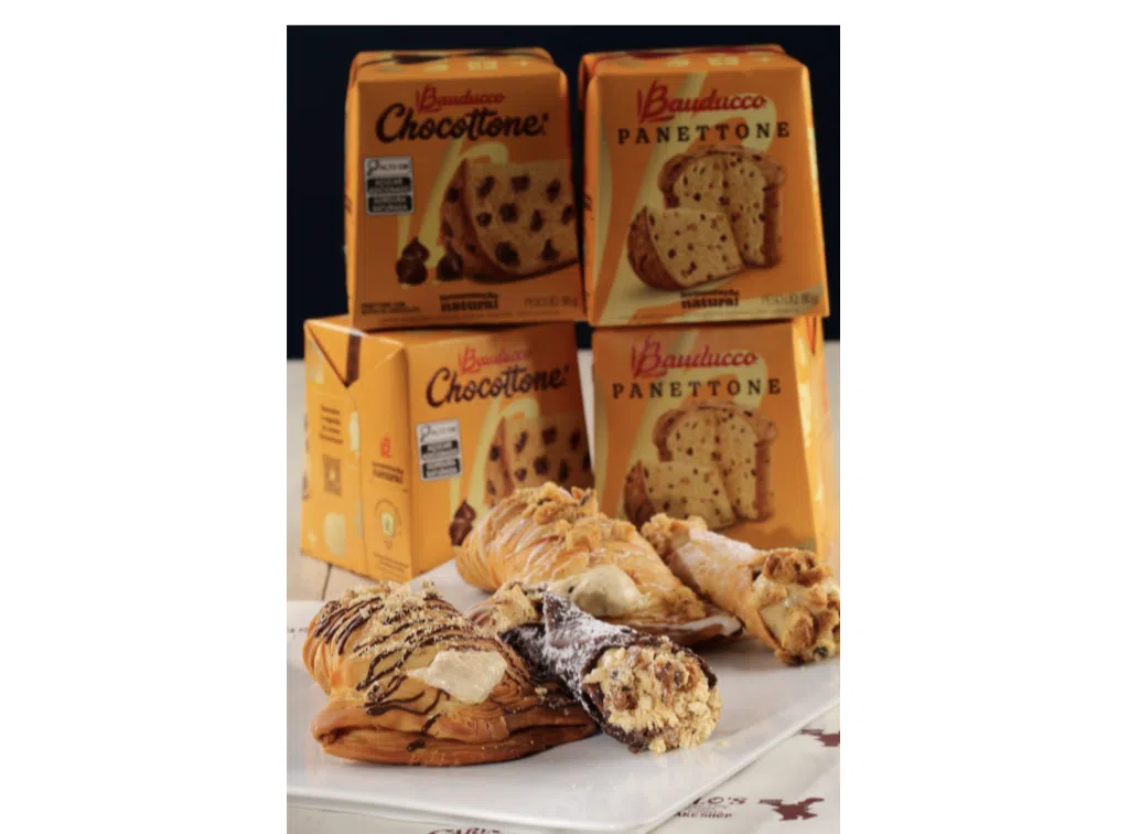 A linha exclusiva de Natal Carlo’s Bakery + Bauducco® destaca Cannoli Bauducco® Panettone (casquinha frita de cannoli com massa levemente adocicada com um toque de canela, recheada com creme Bauducco ® Panettone – creme confeiteiro feito com panetone tradicional de frutas – e coberta com açúcar impalpável e croutons de Bauducco® Panettone) e Cannoli Bauducco Chocottone® (casquinha frita de cannoli com massa levemente adocicada com um toque de canela, coberta com chocolate belga amargo, recheada com creme Bauducco Chocottone® – creme confeiteiro feito com Chocottone® – e coberta com açúcar impalpável e croutons de Bauducco Chocottone®) – R$22,90 cada; Lobster Tail Bauducco® Panettone (massa folhada crocante, recheada com french panetone feito com Bauducco® Panettone de frutas – creme confeiteiro com panetone e chantilly – coberta com chocolate branco e croutons de Bauducco® Panettone); e Lobster Tail Bauducco Chocottone® (massa folhada crocante, recheada com french chocotone, feito com Bauducco Chocottone®, coberta com chocolate meio amargo e croutons de Bauducco Chocottone®), ambos nos tamanhos: mini (R$22,90), clássico (R$26,90) e super (R$28,90).