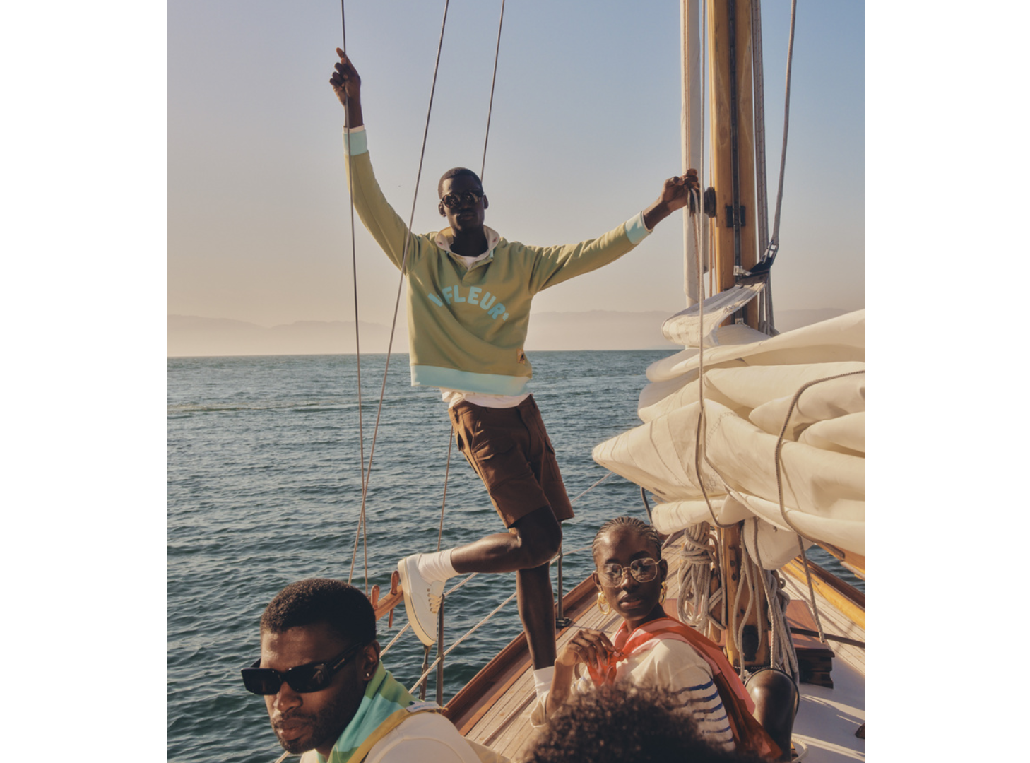 A coleção resgata os modelos Naut-1, inspirado em boat shoes minimalistas com vibe náutica, e o Coach Jogger, tênis de corrida com design retrô e construção robusta. Os calçados aparecem em diferentes combinações de materiais e cores vibrantes, com detalhes exclusivos como estampas florais, cadarços em corda e branding Golf Le Fleur.