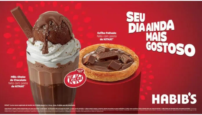 No Ragazzo, os novos produtos chegam com força: o Milk-Shake de Chocolate feito com a pasta cremosa de KitKat® e finalizado com cobertura generosa e pedaços de KitKat®; e a Folhada feita com pasta de KitKat®, que une massa crocante ao sabor clássico do chocolate e pedaços de KitKat®. Já nas lojas Ragazzo Express, o sorvete Twist é feito com KitKat®, que mistura a tradicional calda dupla do Ragazzo e pedaços de KitKat. No do Habib’s, as novidades também ganham destaque com a Esfiha Folhada feita com pasta de KitKat® e pedaços do chocolate, que traz uma releitura doce da tradicional massa folhada da rede, e o Milk-Shake de Chocolate feito com pasta cremosa de KitKat® e finalizado com cobertura generosa e pedaços de KitKat®, que reforça o sabor marcante do chocolate.