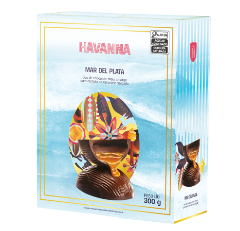 Na Linha Exclusivos Havanna, a principal novidade da temporada é o Ovo Mar Del Plata, ovo de chocolate meio amargo com recheio de caramelo salgado. O sabor é um dos sucessos da linha de alfajores e apresenta uma experiência intensa e equilibrada a partir do contraste entre o amargor do chocolate e a cremosidade do caramelo.