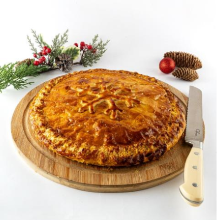 Torta de massa folhada dourada, recheada com tender suculento, creme béchamel e farofa crocante com bacon, cebola caramelizada, cenoura e damasco. Disponível a partir de 01/12 nas lojas físicas e delivery