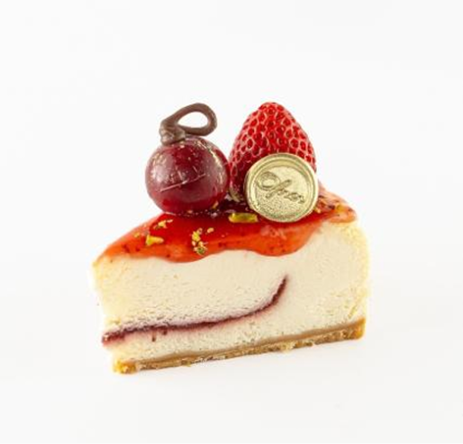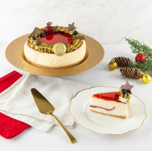 Cheesecake irresistível com base de biscoitos amanteigados, recheio cremoso de cream cheese com baunilha e geleia de morango. Coberta com camada generosa de geleia de morango e decorada com uma guirlanda de maria-mole com pistaches crocantes, estrelas de chocolate ao leite, bolinha natalina de chocolate branco e vermelho e sinete dourado Ofner. Disponível a partir de 15/12 nas lojas físicas e delivery.
