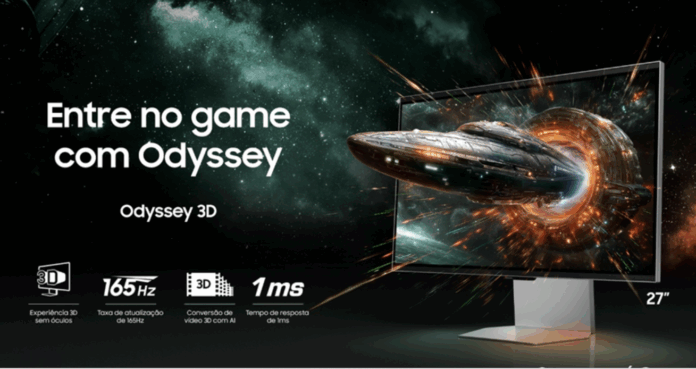 A Samsung traz para o Brasil três novos monitores: o Odyssey G9, Odyssey OLED G8, além do inédito Odyssey 3D. O modelo, cujo protótipo foi exposto durante a BGS 2024, promete atrair o público gamer por garantir imagens em terceira dimensão sem a necessidade de uso de óculos.