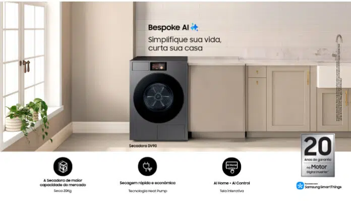 “A Heat Pump Samsung Bespoke AI Laundry DV90F é a secadora perfeita para quem não tem tempo a perder e precisa secar grandes quantidades de roupa de uma só vez, garantindo eficiência e praticidade dentro de casa”, explica Gabriela Potiens, gerente de produtos de Home Appliance da Samsung Brasil. “O modelo ainda traz recursos de inteligência artificial que garantem o máximo desempenho na secagem”.