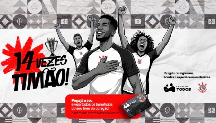 Cartão de TODOS faz campanha para celebrar fase do Corinthians