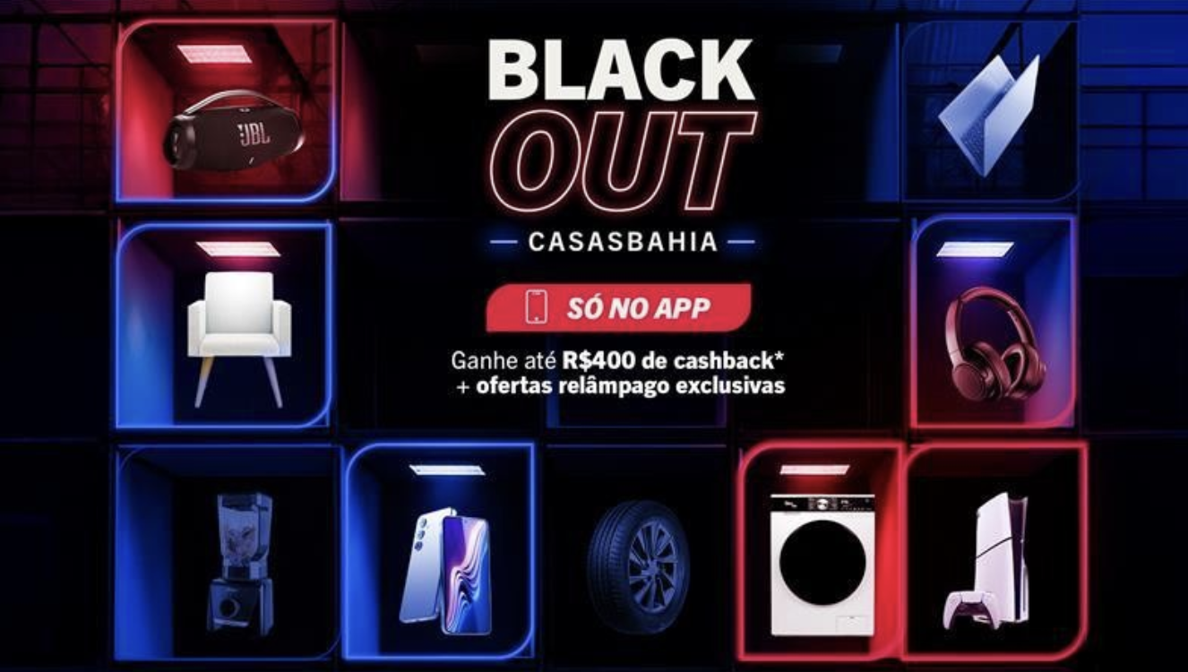 A Casas Bahia acaba de lançar a campanha Blackout, uma ação inédita e exclusiva em seu aplicativo, que promete aquecer as vendas antes da Black Friday. De 15 a 25 de outubro, os consumidores que acessarem o app terão acesso a ofertas relâmpago diárias e poderão garantir até R$400 de cashback.