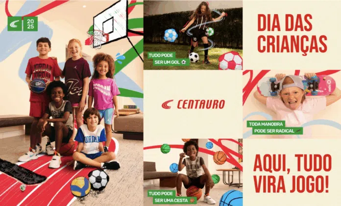 | A Centauro, maior rede de artigos esportivos da América Latina, lança campanha de Dia das Crianças 2025 com o mote ‘Aqui, Tudo Vira Jogo’. A iniciativa convida famílias a resgatarem a essência da infância, incentivando brincadeiras que estimulam a imaginação e o movimento, longe das telas, e que fortalecem a conexão entre pais e filhos por meio de memórias ativas.