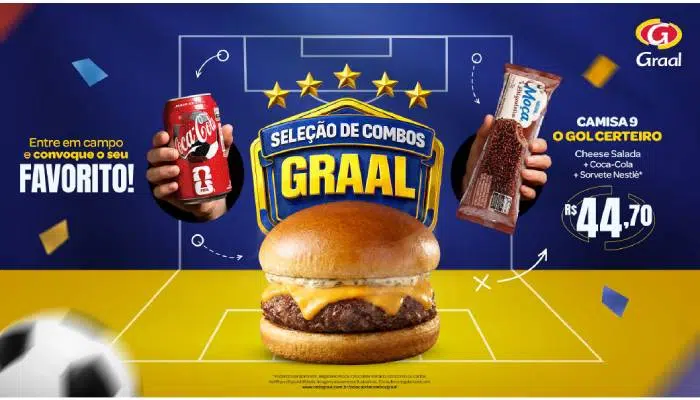 No clima de ano de Copa do Mundo a campanha apresenta a “Seleção de Combos Graal”, de sete opções, que reúnem itens do cardápio Graal, uma lata de Coca-Cola e um picolé Nestlé, oferecendo uma experiência prática e saborosa para quem faz uma pausa nas unidades da rede.