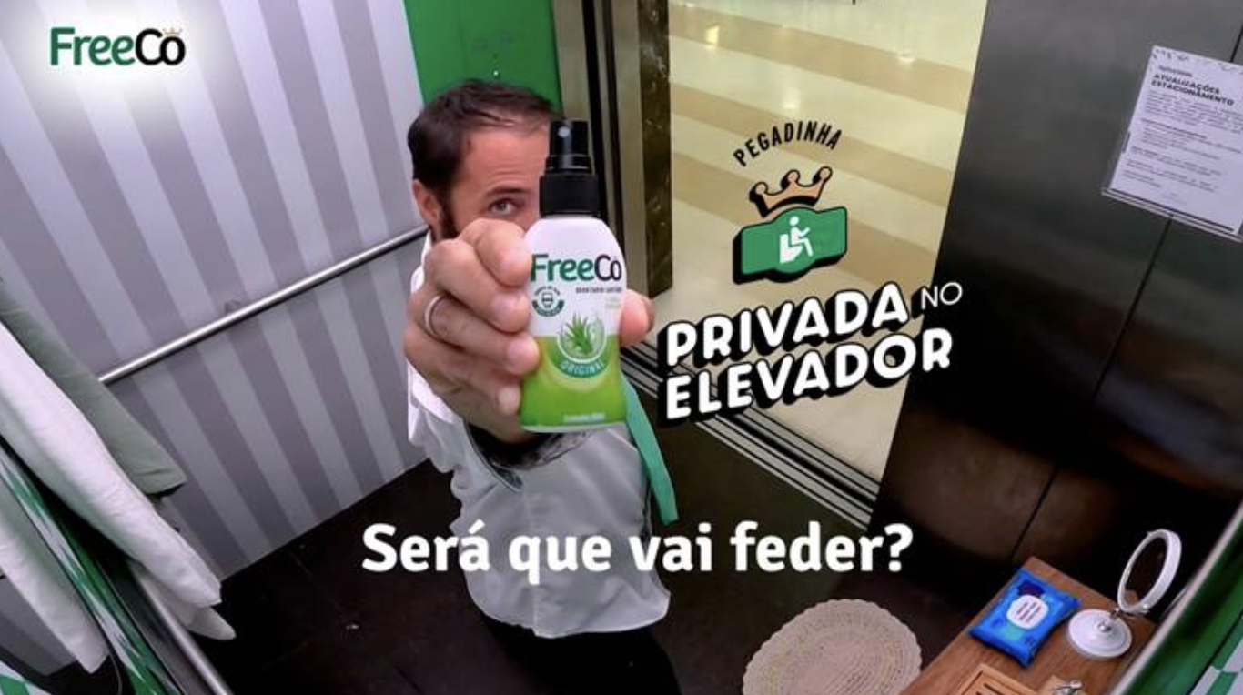 Para chamar a atenção de forma criativa, a FreeCô produziu uma série de vídeos com pegadinhas gravadas dentro de elevadores, locais onde as pessoas normalmente se preocupam com o cheiro. A ideia foi levar um “banheiro” para esse ambiente inusitado e registrar as reações espontâneas, engraçadas e até surpresas de quem entra no elevador. Os vídeos serão publicados nas redes sociais da FreeCô, como TikTok, Instagram e YouTube.