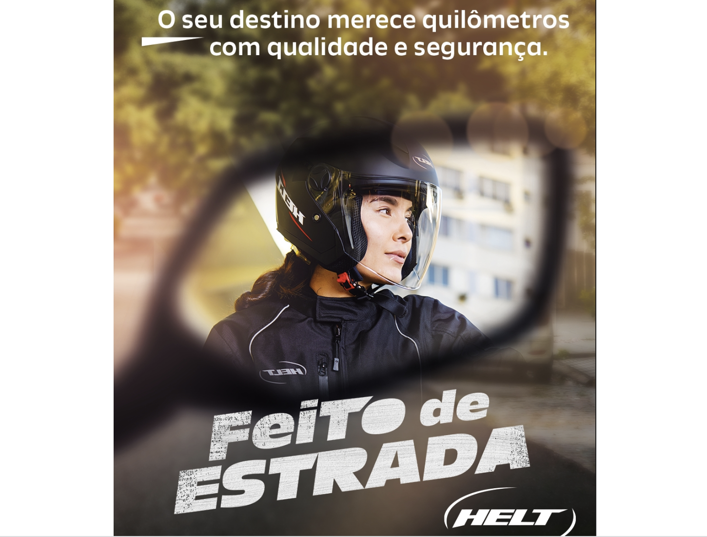 Após primeira etapa que celebrou os 15 anos da Helt, a estratégia criativa evolui para reforçar ainda mais a conexão com o público. Nesta nova fase, o mote “O seu destino merece quilômetros com qualidade e segurança” traduz a proposta da Motociclo de entregar estilo, proteção e confiança a cada trajeto, consolidando seu posicionamento no mercado de acessórios motociclísticos ao incorporar os novos capacetes da linha Helt.