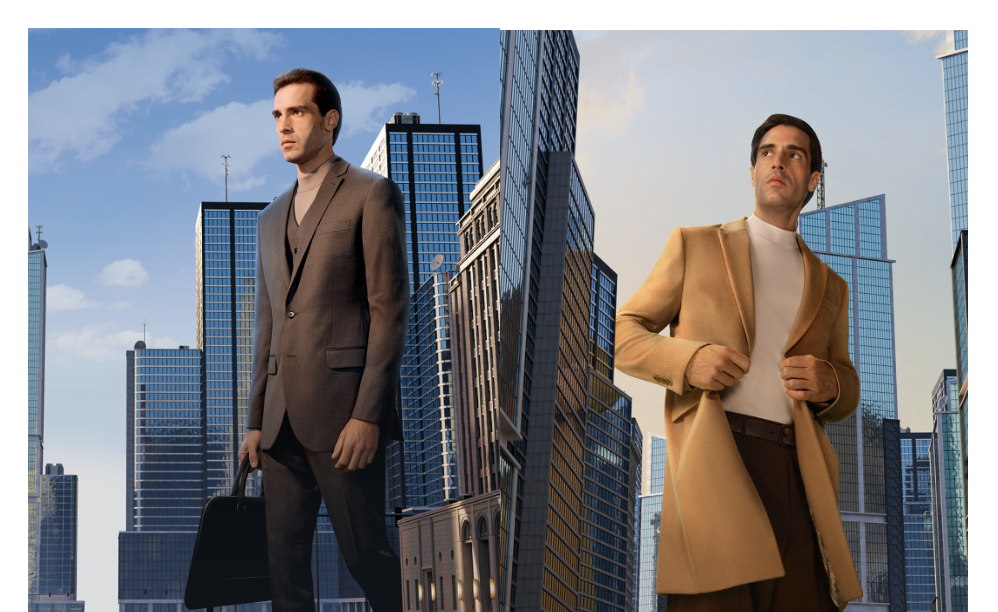 Para trazer um toque conceitual, os modelos foram retratados em perspectivas ampliadas, inseridos no contexto urbano. A proposta busca representar o olhar do filho, que enxerga o pai como uma figura grandiosa e inspiradora.