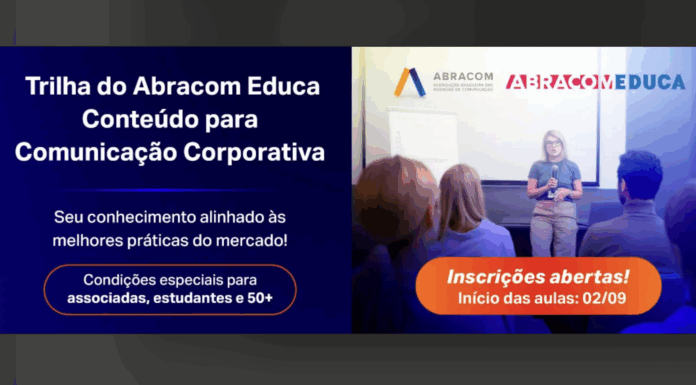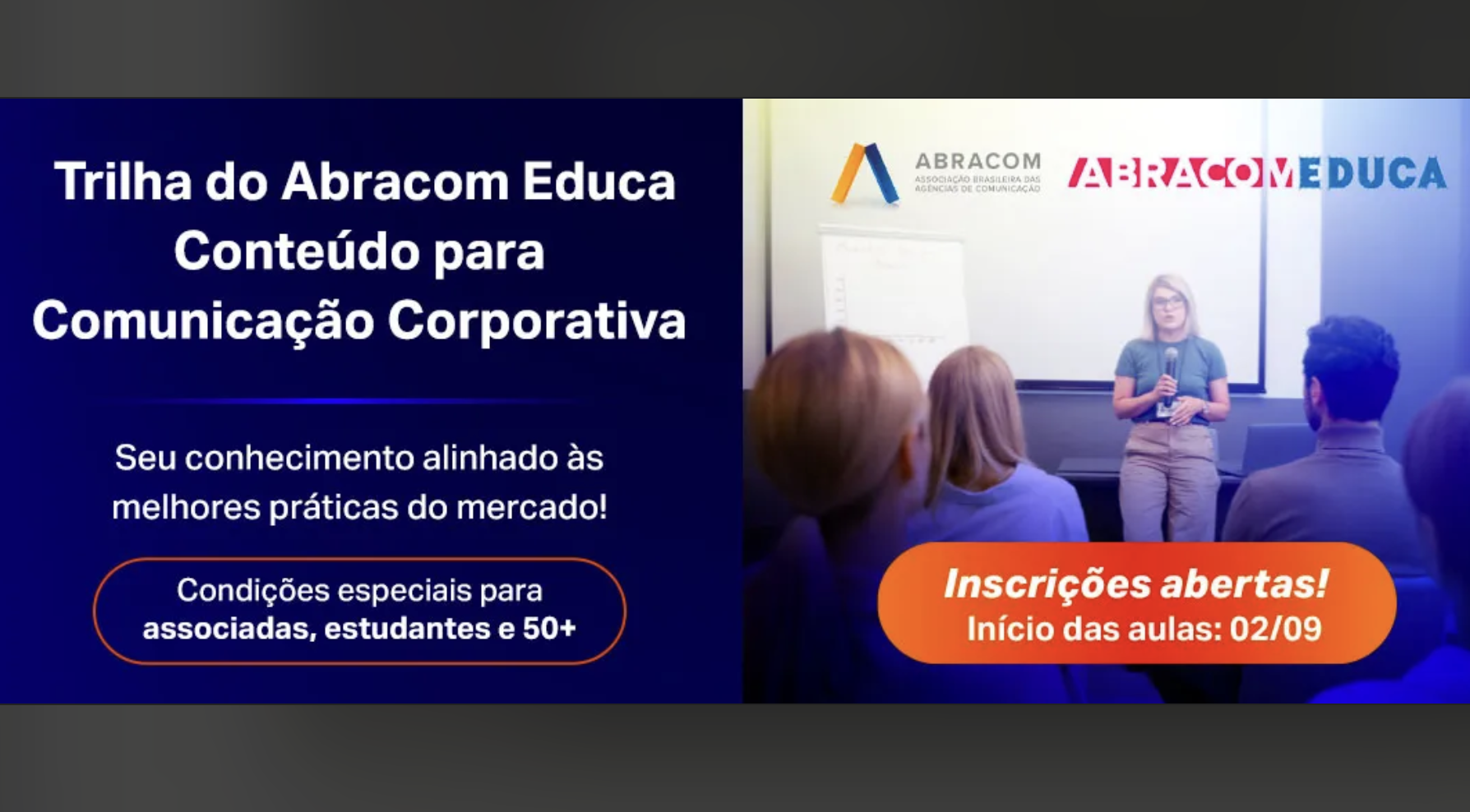 A Associação Brasileira das Agências de Comunicação (Abracom) está com as inscrições abertas para a nova trilha do Abracom Educa com foco em conteúdo para comunicação corporativa. O curso terá início no dia 2 de setembro e contará com quatro módulos em aulas 100% online e ao vivo, ministradas por profissionais renomados das maiores agências de comunicação do Brasil.
