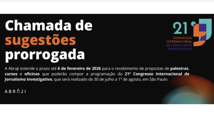 O 21º Congresso Internacional de Jornalismo Investigativo está recebendo sugestões até 6 de fevereiro de 2026. E essa não é a única novidade: o evento já anunciou sua data de realização. O Congresso acontecerá de 30 de julho a 1º de agosto, em São Paulo!