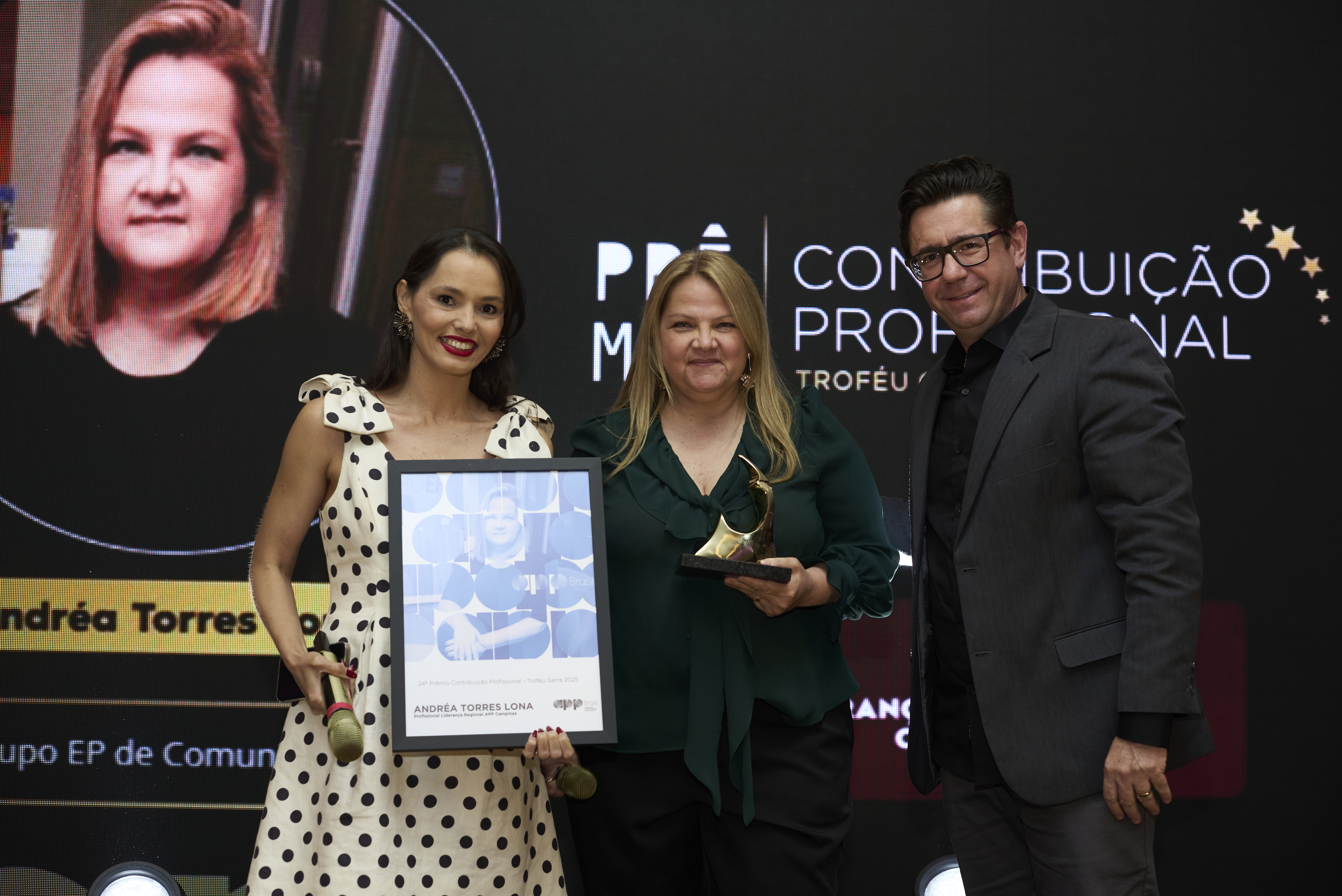 A cerimônia reservou um momento para reconhecer Andréa Torres Lona, gerente de Marketing do Grupo EP, que recebeu o Troféu Garra – Prêmio Contribuição Profissional da APP Brasil, na categoria Liderança Regional indicada pela APP Campinas. Com uma trajetória consolidada desde 1997 no Grupo EP, Andréa foi reconhecida por sua atuação estratégica, sua liderança inspiradora e sua contribuição relevante para o fortalecimento do mercado de comunicação no interior paulista e sul de Minas Gerais.