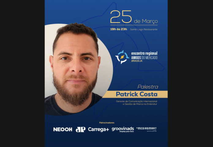 No dia 25 de março contaremos com uma palestra do Patrick Costa, gerente de comunicação internacional e gestão de marca na Embratur, em nosso Encontro Regional.