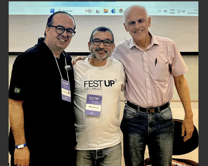 Durante o FEST’UP eu mediei um encontro improvável no território da comunicação, que, de tão improvável, deu certo. De um lado, Ricardo Nicodemos, presidente da ABMRA, trazendo a voz do campo, o cheiro da terra molhada e o suor de quem planta. Do outro, José Lourenço Pechtoll, presidente da Ceagesp, falando de caminhões, corredores abarrotados e uma cidade chamada Ceagesp, por onde 60 mil pessoas passam todos os dias como uma metrópole de alimentos.