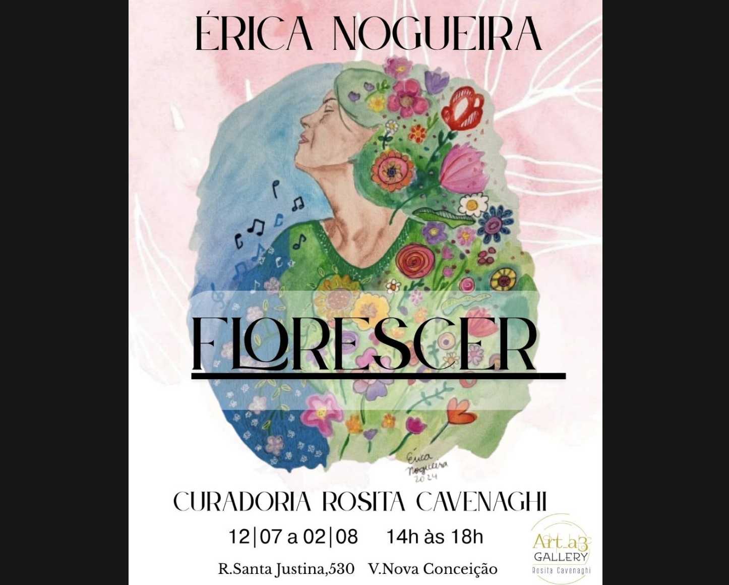 A exposição “Florescer” terá a curadoria de Rosita Cavenaghi, e estará disponível para visitação na galeria ART A3 Gallery a partir do dia 12/07 a 02/08. Venha conferir!