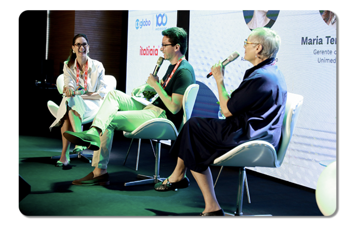Maria Tereza Ramos (Unimed Fortaleza), Ana Celina Bueno (Acesso Comunicação) conversam sobre relações sustentáveis, com a mediação de Fernado Hélio (Nosso Meio).