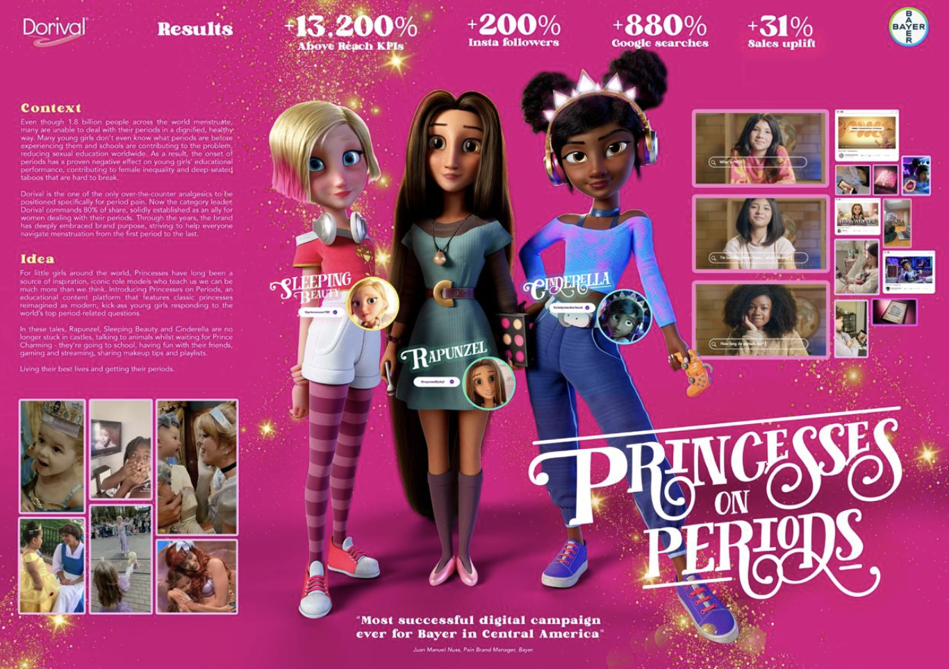 A quebra de paradigmas da menstruação em adolescentes foi tema da campanha  “Princess on Periods” para a agência Mullen Lowe UK e para a Bayer. Com animações produzidas pela produtora brasileira BIG, de São Paulo, a campanha faturou, em 2025, o Silver Award em um dos principais e mais rigorosos festivais de criatividade no mundo: o Clio.