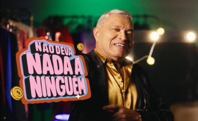 “Não devo nada a ninguém” é o refrão que embala o filme principal da campanha, cantado pelo próprio Conde, em cenário glamouroso e bem-humorado, cheio de referências ao universo do brega. No vídeo, ele aparece se preparando no camarim, cantando e interagindo com personagens que dançam e celebram a chance de renegociar suas dívidas, com descontos que chegam a até 90% para pagamentos à vista e até 70% para negociações parceladas.