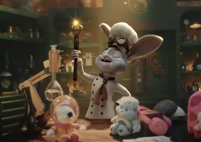 No filme principal, a campanha começa na fábrica mágica da Cacau Show, onde a Páscoa parece surgir diante dos olhos do público. A narrativa então conduz o espectador até o “laboratório” do Coelho Chef, que é o grande mestre das invenções e, ao lado de uma ajudante, passa a revelar as criações da temporada como quem abre uma caixa de surpresas. Entram em cena presentes inspirados em personagens como Ursinhos Carinhosos e Snoopy, itens colecionáveis e presentes que transformam o chocolate em brincadeira, como a mochila com pelúcia, a máquina de bolha de sabão dos Chocomonstros e a pelúcia de dinossauro. Em um momento de humor, a ajudante desaparece e o Coelho Chef assume o protagonismo da cena, antes de o filme se encerrar com a apresentação do portfólio completo da campanha.