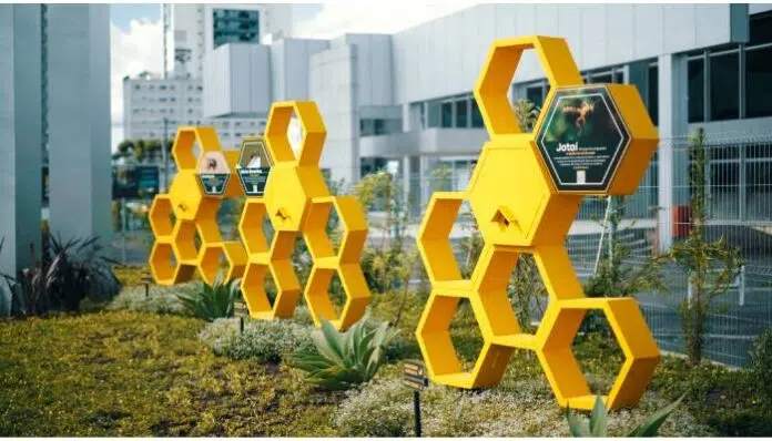 O Espaço Colmeia terá três apiários de espécies nativas brasileiras — Mandaçaia, Mirim Emerina e Jataí — fundamentais para a polinização e equilíbrio ecológico. O mel produzido pelas colmeias será destinado a instituições beneficentes.