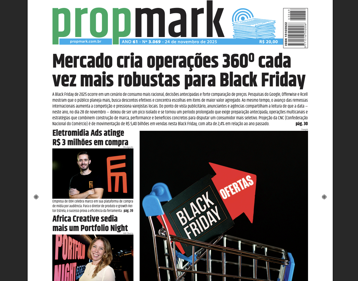 Do ponto de vista publicitário, anunciantes e agências compartilham a leitura de que a data — neste ano, no dia 28 de novembro — deixou de ser um pico isolado e se tornou um período prolongado que exige preparação antecipada, operações multicanais e estratégias que combinem construção de marca, performance e benefícios concretos para disputar um consumidor mais seletivo. Projeção da CNC (Confederação Nacional do Comércio) é de movimentação de R$ 5,40 bilhões em vendas nesta Black Friday, com alta de 2,4% em relação ao ano passado.