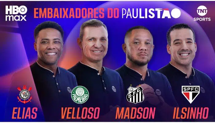 Já habituados com a cobertura do Paulistão, o ex-goleiro Velloso e o ex-lateral Ilsinho, mais uma vez, vão compor o elenco da TNT Sports como embaixadores de Palmeiras e São Paulo, respectivamente. Para representar Corinthians e Santos, a marca esportiva anunciou grandes novidades e contratou os ex-meias Elias e Madson, que construíram trajetórias vitoriosas com as camisas dos clubes alvinegros e se tornaram ídolos das torcidas. Os quatro craques estarão presentes nas transmissões de todos os jogos de seus respectivos clubes. Ainda participarão da programação da TNT Sports nos dias de rodadas e produzirão conteúdos exclusivos para as redes sociais da marca.